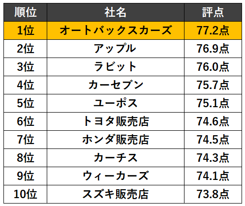 オートバックス車買取(オートバックスカーズ)は直近のオリコン車買取部門の総合ランキング(下記)で5年連続第1位です。